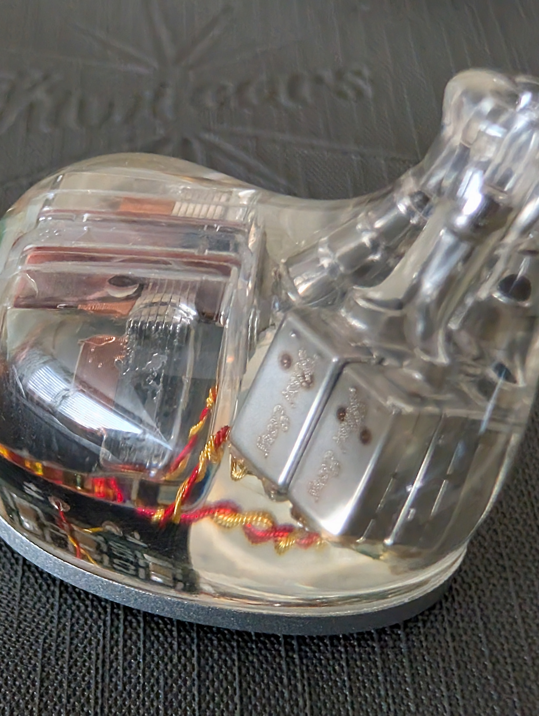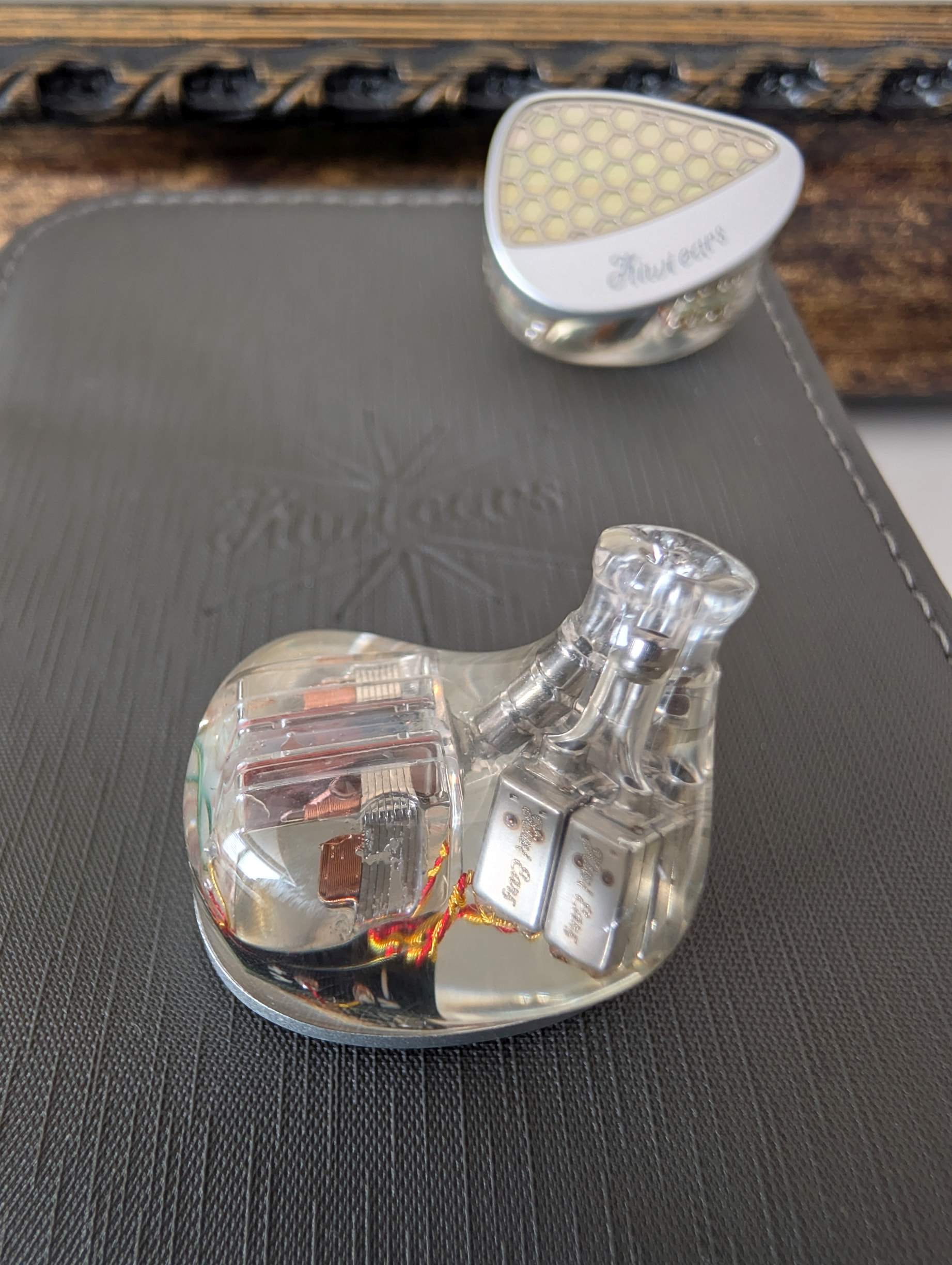 Vented, Clear resin shells with stainless steel faceplates are commensurate with current high quality 3D printing standards. And allow a glimpse at the driver array.