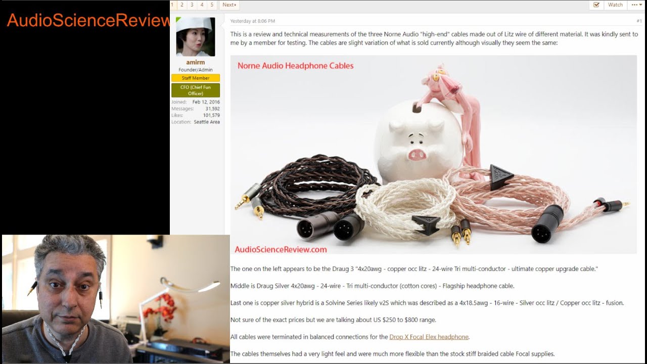 Amir is a much needed audiophile snake oil exorcist. I too have an professional electrical background and whenever I read about how good or special some exotic IEM cable sounds I could rip my eyes out.