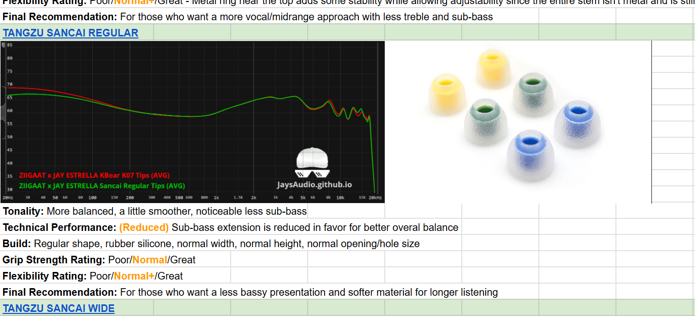 So many interesting findings here. Iāve always felt that the Tanchjim treble tips had better and more impactful bass than the bass tips, and lo and behold, the graph I think somewhat confirms what Iām hearing. Same goes for the Final E tips - Iāve always felt that with tips that have a super small opening, it compresses the soundwaves in a way that makes it peaky and not very enjoyable. Look at that 3kish peak on the final E graph.