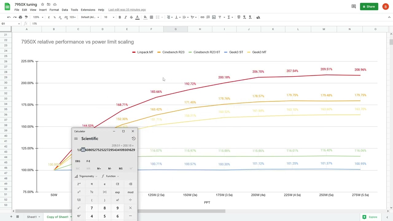 That was a very oddly done test. He makes no mention of what he used to cool the 7950X, what specific DDR5 kit was used even though his main test was Linpack, which as he states is very memory sensitive. There’s no mention of possible thermal throttling even though he tested at 275W, but said that 275W is un-coolable? He didn’t record clock speed at at each power limit. It almost feels like this was more of a proof of concept test than anything else. Which, yeah, of course you can lower the power limit or undervolt and get a majority of the performance. That’s been the case for quite a while with any CPU on the higher en of the power scale. But I feel like, given what I’ve learned about Zen4 so far, there should have been a little bit more scaling there beyond 200W. These CPUs are really good. Especially at properly multi-threaded tasks.