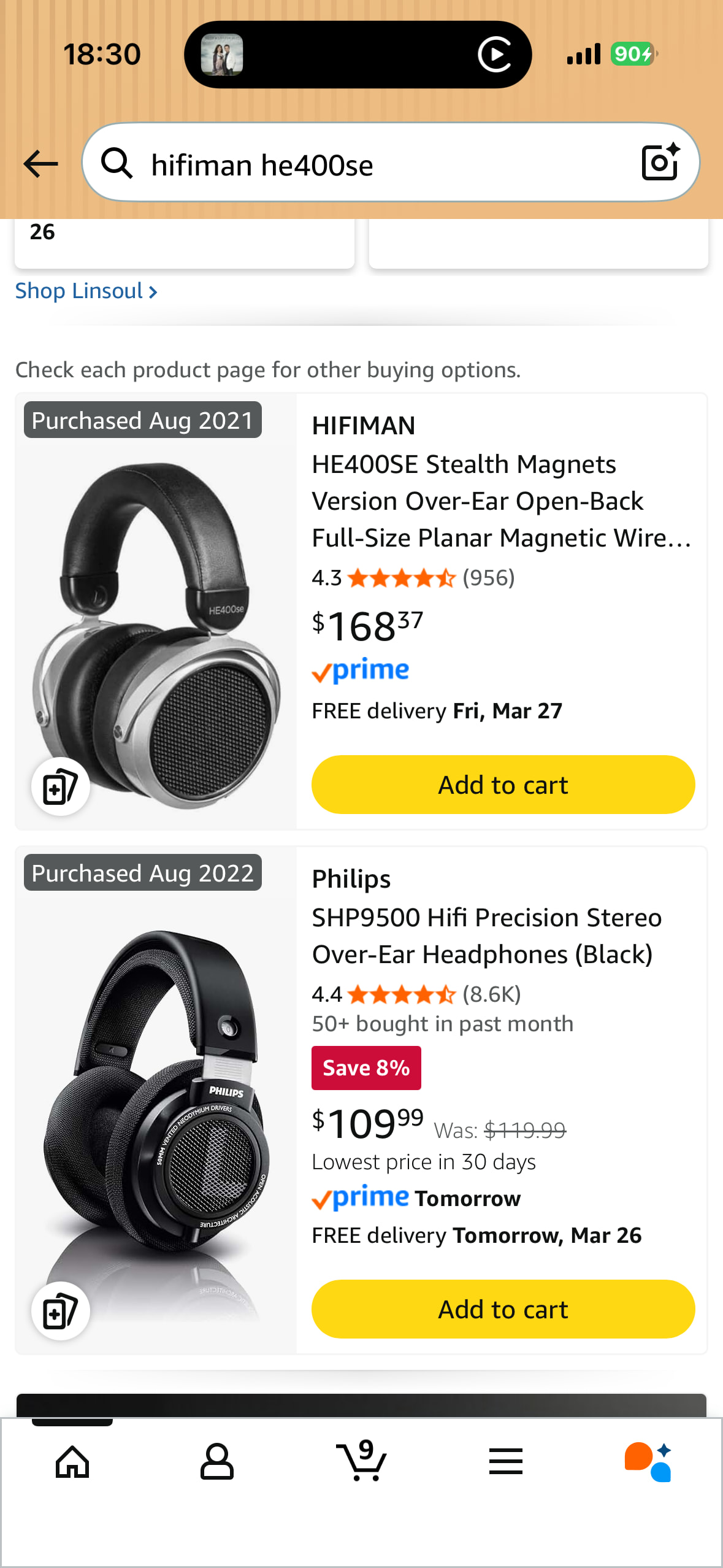 I think the HE-400SE is a solid, entry-level headphone for its price. I think the SHP 9500 is one of the worst headphones I’ve heard. No bass, more grain in the treble than a Kansas wheatfield.