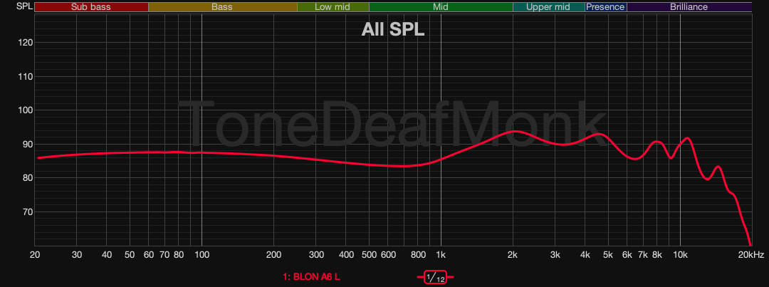 The graph suggests that the pinna gain is a bit too much for me, and the peak is a bit early at 2 kHz. Perhaps Blon is hoping to entice treble heads and people who like Harman pinna gain.