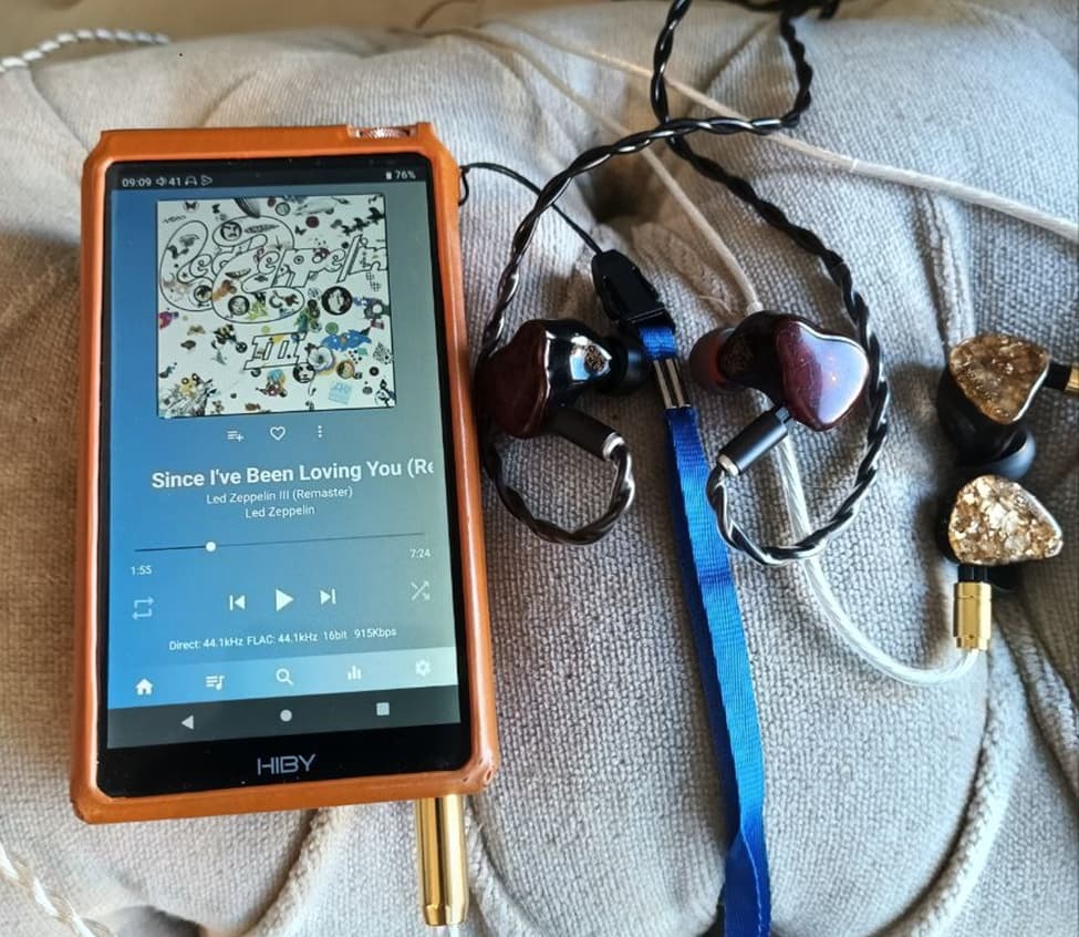 Hiby RS6 player without any enhancers/tuning on the balanced output (4.4mm). Well, except for Darwin Ultra, of course. Without it, the sound is bland to me. For testing the high requencies/midrange/soundstage/air, the track “Since I’ve Been Loving You” by Led Zeppelin was used, and for the low frequencies, the song “Honey Bee” by Blake Shelton (hello country lovers). By the way, I also recommend evaluating low frequencies on country songs. In most tracks, the low end is recorded very neutrally. Well, for my taste. There’s not as much as in EDM, and not as little as in most rock recordings, i.e., just right. They don’t steal the show but still maintain a worthy place in the compositions. At least in terms of quantity.
