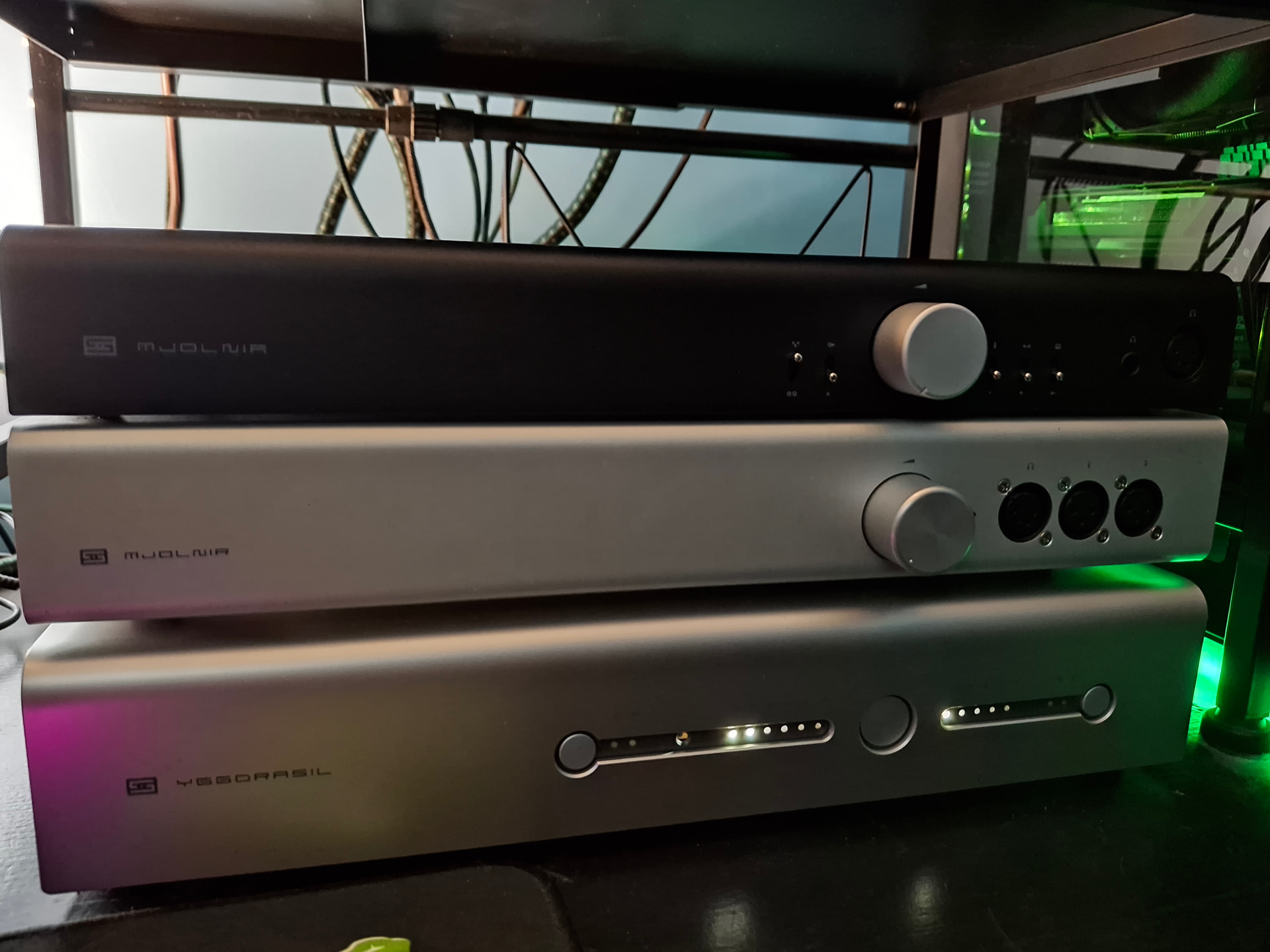 Bought a Schiit Mjolnir 3. Next have to make a proper shelf for all these amps. Jotunhiem 1, Lyr 1, Lyr +, Burson conductor sl, Darkvoice 336se, fulla 2, Mjolnir 1, and now Mjolnir 3. I still Prefer Mjolnir 1 with how transparent and wide it is in comparison for some stuff, it’s crazy how open it is, almost like its not there other then the slight bit of brightness. Mjolnir 3 is pretty warm, and dark sounding, with a lot of bass very detailed after getting it setup right, I find it sounds similar to how I have my Lyr + setup with GE tube, but more detailed and a lot more separation. I had to do some experimentation changing out my power conditioner, it sounded off until I upgraded, both Mjolnirs sound vastly improved, they seem to be pretty transparent and sensitive amps. Plenty of power for 2 watts class A, but takes forever to warm up to sound its best, at least 30-40 min or so.